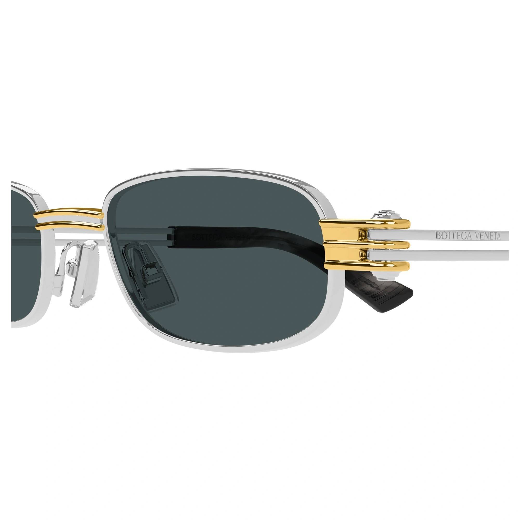 BOTTEGA VENETA 1381S 003 50 Gümüş Unisex Güneş GözlüğüBOTTEGA VENETA ikonik Köşeli Titanyum güneş gözlüğü, tarzı ve kaliteli malzemesi ile göz alıcı bir aksesuar. Hem erkekler hem de kadınlar için uygun olan bu güneş gözlüğü, güneşin zararlı ışınlarından korunmanızı sağlarken, stilinizi de yansıtır.